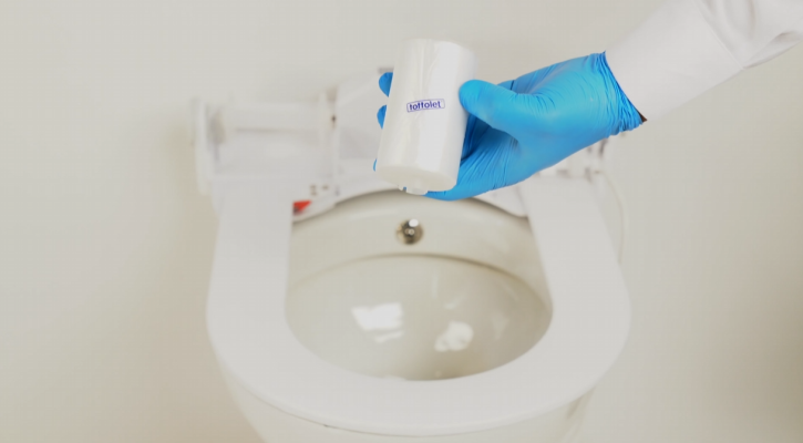 Tottolet Butona basıldığında veya Tottolet Ledsör’ün içine doğru elinizi getirdiğinizde de Tottolet Rulosu klozet simidinin etrafından bir taraftan öbür tarafa dönüp, kullanılır hale gelir.